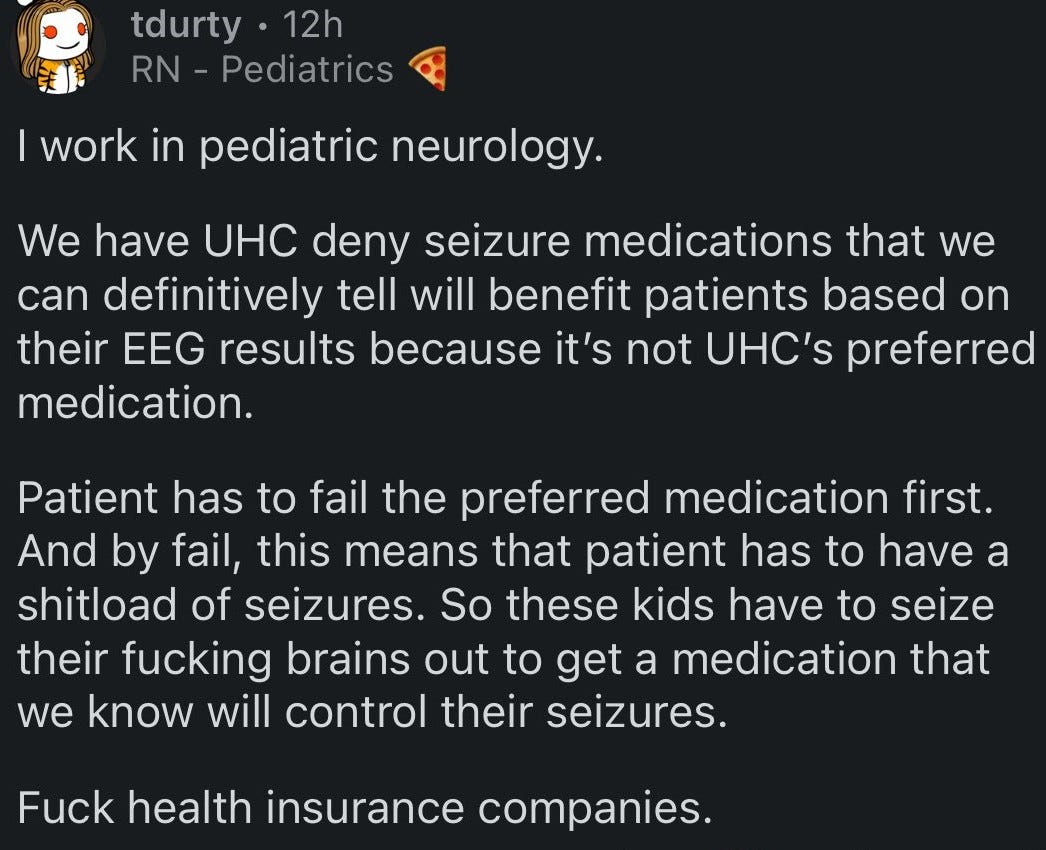 Every regular person in the United States who works their ass off and struggles to pay their bills hath suffered mightily at the hands of these greedy insurance companies.