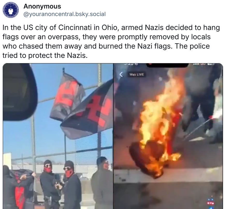 Armed Nazis Flee as Local Heroes Burn Their Flags