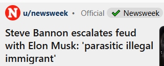 Is it wrong that I agree with Bannon that Leon “Bad Implant” Musk is a parasitic illegal immigrant? I guess the bad implant says a lot about how he feels about himself… 🤔