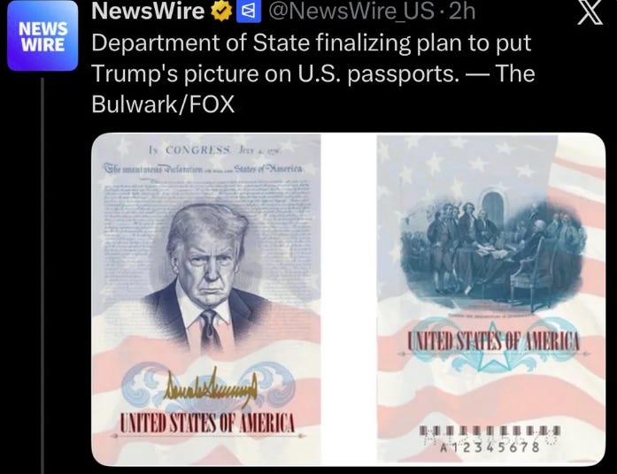 But while the King of England was busy reminding Americans about their democratic past, the Department of State announced they are putting Trump’s picture on U.S. passports.