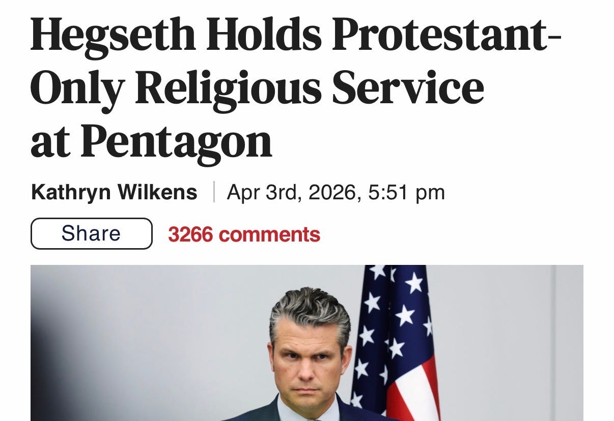 Lo, Pete Hegseth has actually been asking Americans to pray for military victory in the name of Jesus Christ.