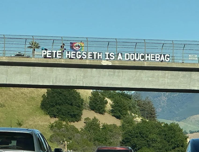 Love the sign on the overpass.