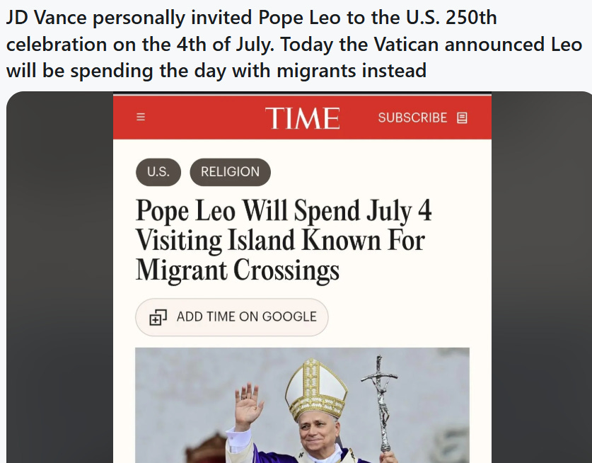 Speaking of being caught dead, I’m pretty sure Pope Leo remembers what happened the last time JD Vance stopped by.