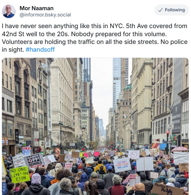 Today you showed up with your feet, your fury, and your funniest damn signs. I bring you glad tidings from the streets, where hope marched loud and the billionaires watched nervously from their compounds.