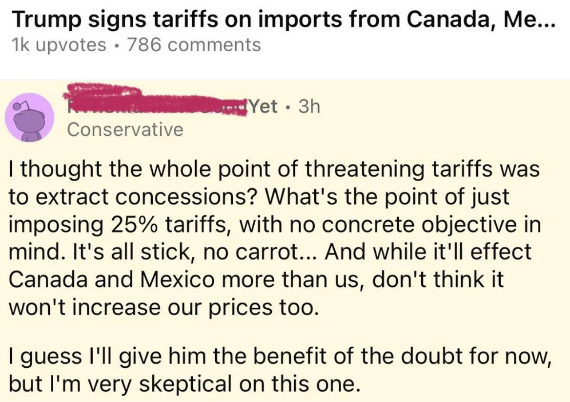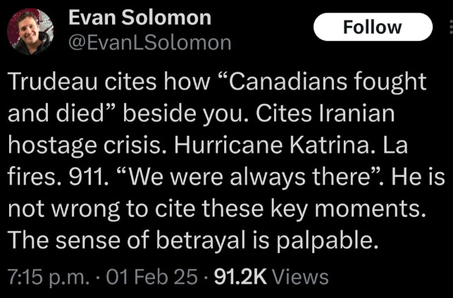 Mr. Trudeau is 100% right, of course. This betrayal is not only pure evil, it shows the extent of the madness of King Donald. He truly does think he can make Canada the 51st state. This will never happen.