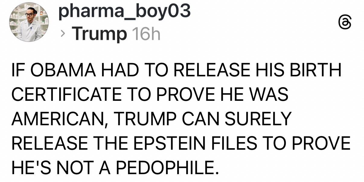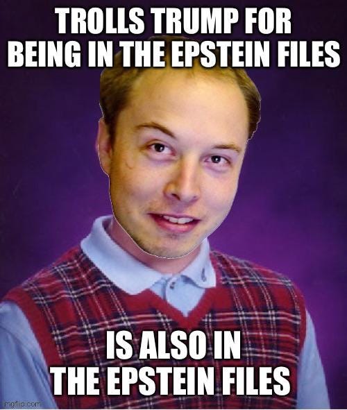 The guy who bankrolled the Supreme Court is in the Epstein files. The man sitting in the Oval Office is in the Epstein files. The richest man alive is in the Epstein files.