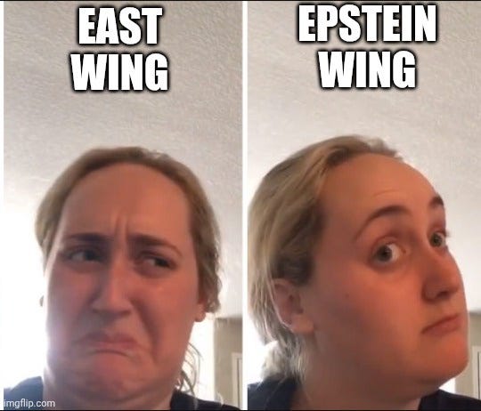While America is still shut down, Donald has been busy tearing down the East Wing of the White House this week to make for his new golden Epstein Wing / Party Palace / Nazi Bunker.