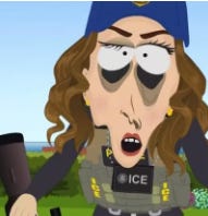 South Park didn’t just roast her melting plastic face; they equally went after her ineptitude as the head of ICE. She shouts “JESUS CHRIST!” and shoots an innocent dog in every scene.