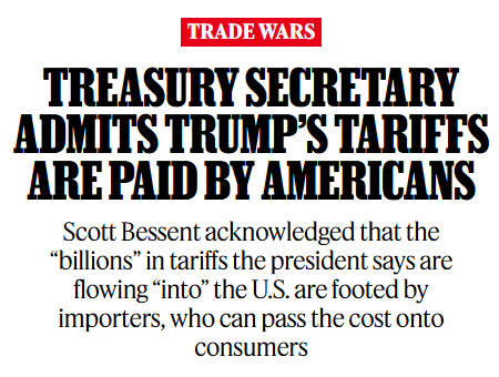 VERILY, Trump’s own Treasury Secretary just admitted that these tariffs are paid for by Americans, NOT China. Importers pass the cost to consumers, prices skyrocket, and suddenly even the basics are out of reach for most people.