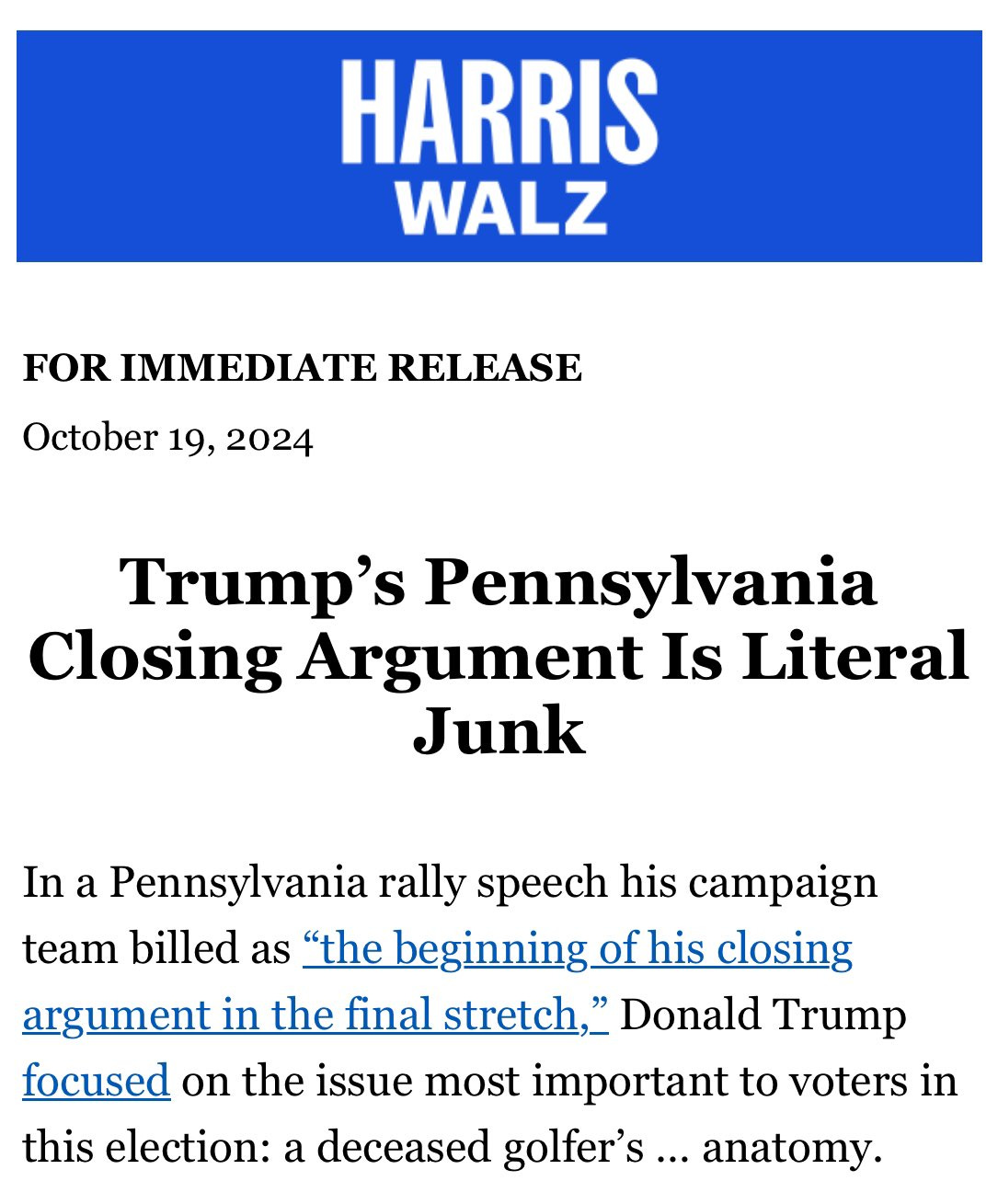 What bothers me the most is that his followers were all laughing at his crudeness - they seem to have no idea that discussing a dead golfer’s sick size at a political rally is inappropriate, and doesn’t qualify him to be president.