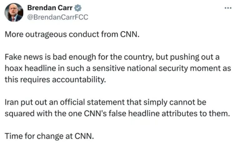 CNN reported this news on air…and then Trump and Brendan Carr lost their minds and screeched that it’s not true.
