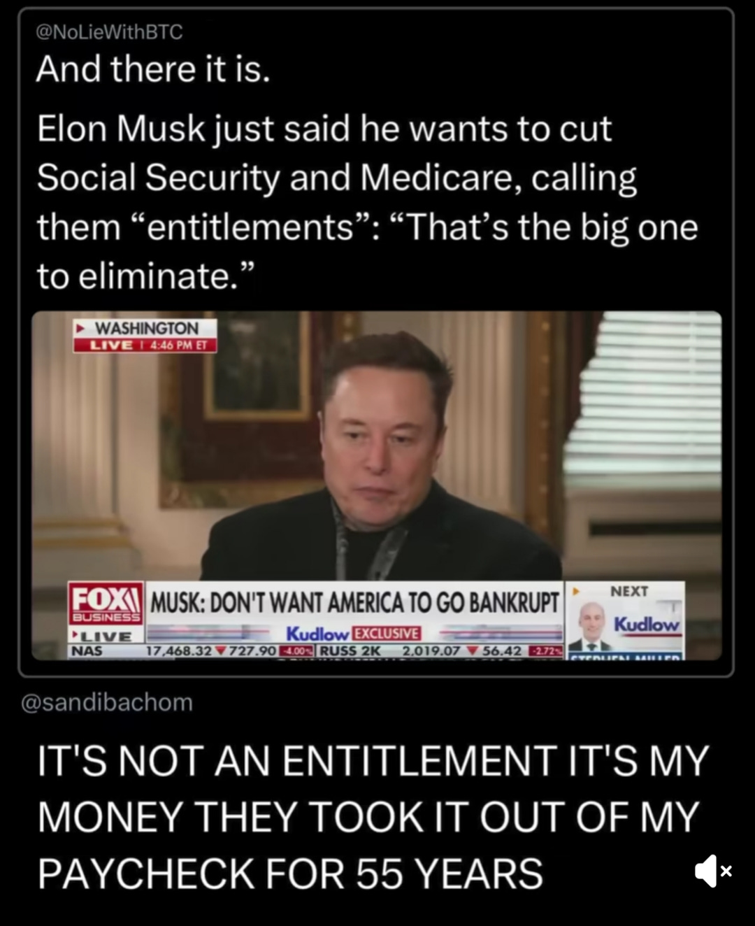 In fact, ketamine-fiend and cruel bastard Elon recently stated his desire to eliminate Social Security and Medicare entirely. So…screwing everyone is clearly the plan.