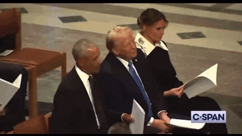 As if to escape the vortex of idiocy, war criminal George W. Bush jogged past Donold and playfully bro-smacked Obama’s belly. Was it a thank-you for taking one for the team? Or is W. just thrilled that he’s no longer the most hated president in the room? Either way, he sucks too.