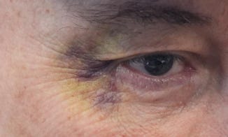 Shortly after, Musk showed up for a press conference sporting a shiner. And he blamed it on his five-year-old son.