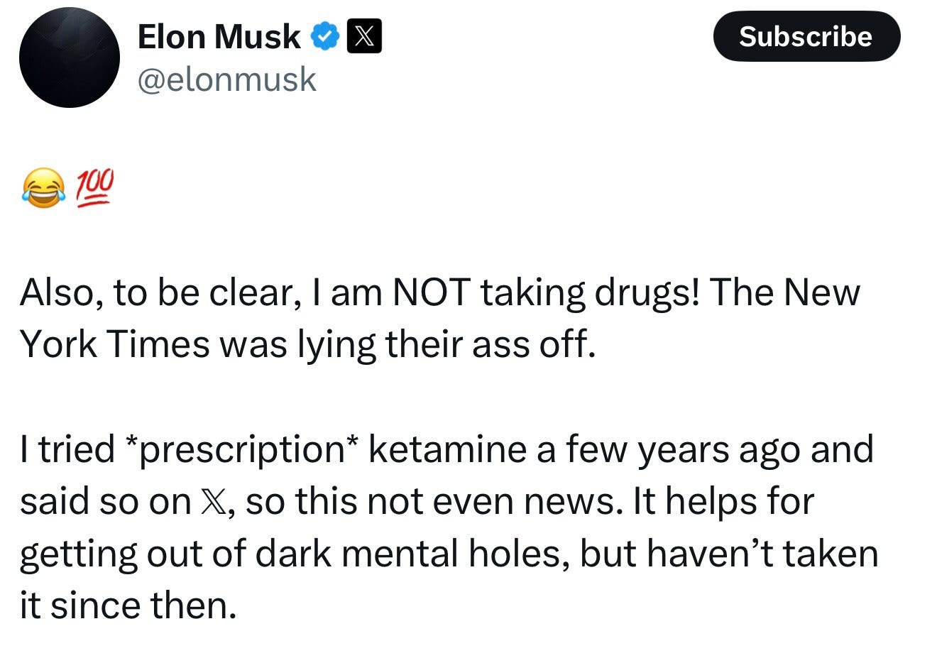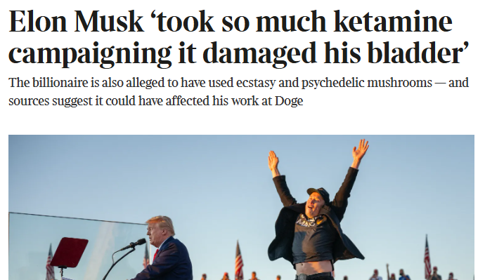 This week, on Elon’s ‘last day’ at the White House, the New York Times reported that Musk was regularly high during the 2024 campaign and it only got worse once he started running DOGE. No shit!