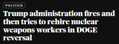 The people know who is responsible for everyone getting fired. It was that unelected foreign billionaire asshole. No amount of throwing other people under the bus can change that now. Who will Elon throw under the bus next? Kristi Noem? Little Marco? Donold himself?
