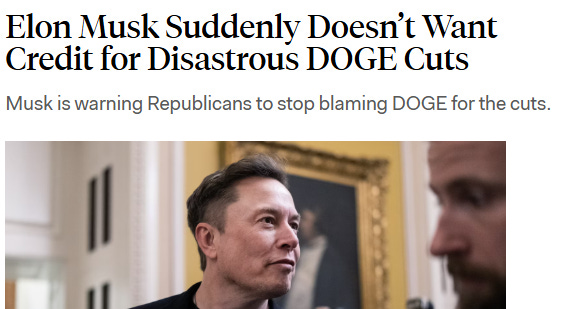 Musk is now telling Republicans that these cuts weren’t his fault and to “stop blaming DOGE.” Is this guy forking serious? It was the departments! The bureaucracy! The cabinet members! Anyone but him! God believes the expression goeth, “child, please.”