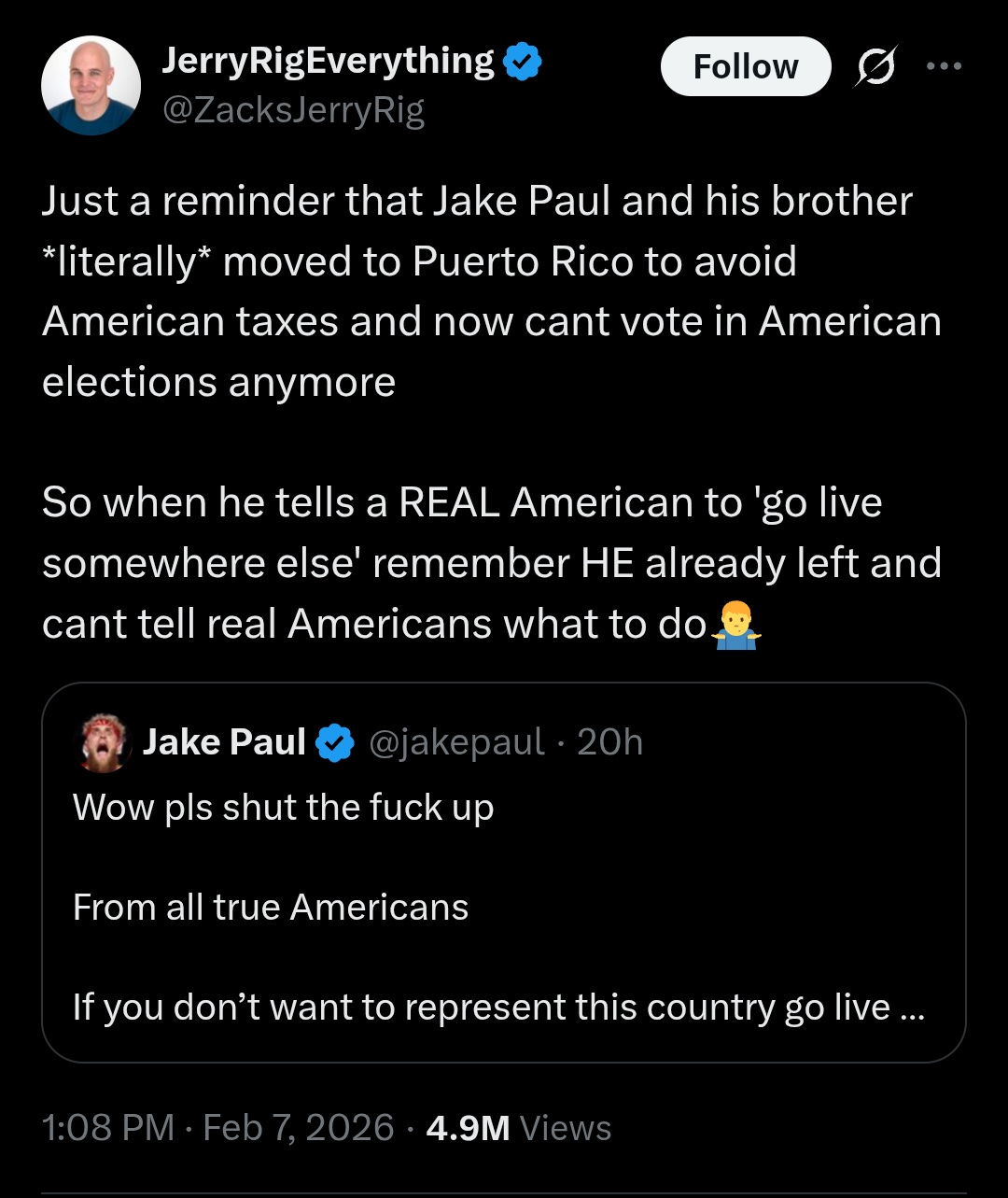 That’s like freaking out over a Puerto Rican singer whilst living in Puerto Rico. Like hypocrite Jake Paul did.