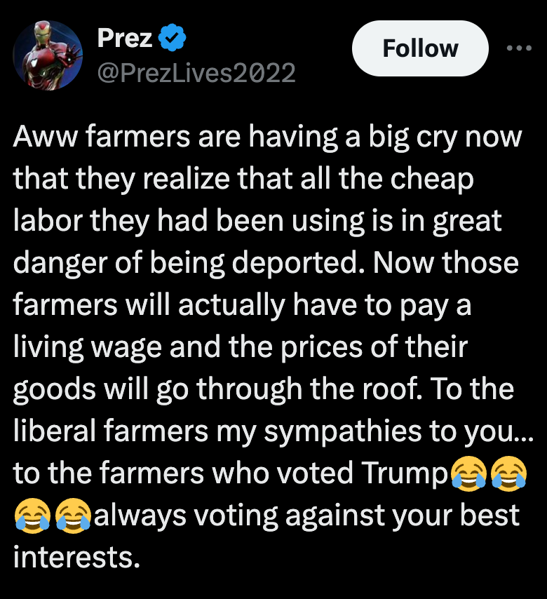 Point being, farm workers are essential to our society. We need to treat them well.