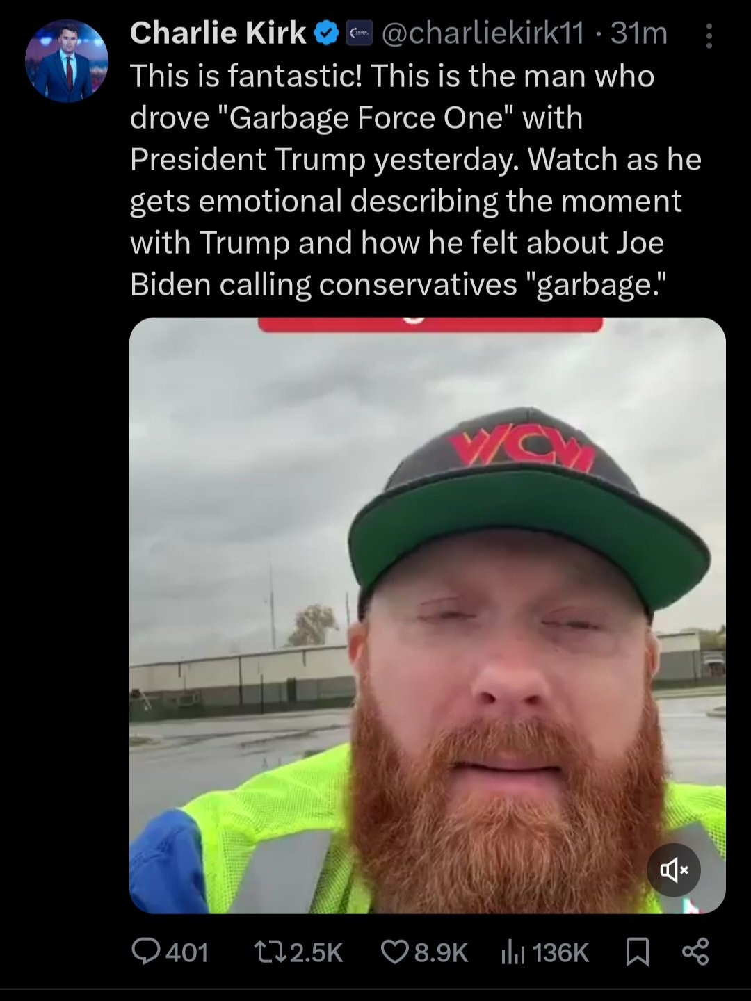 Charlie Kirk is supposed to be a leader of the right wing, and well, the stupid fuck reposted this video with a glowing endorsement.