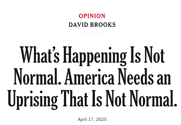 However, behold David Brooks, longtime loathsome conservative columnist and likely inspiration for the NY Times Pitchbot, who did the most he can do. He used his most prized possession - his op-ed space on the NY Times - to say something truly radical.