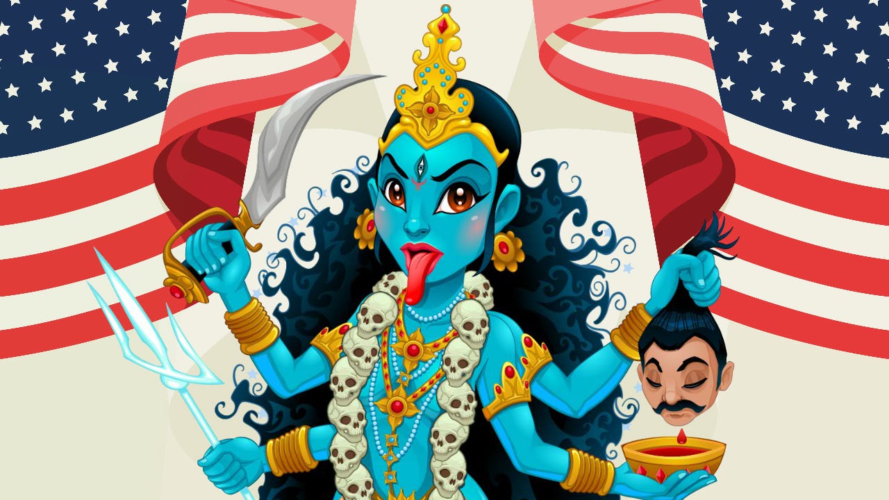 “America loves wars so much, why not the God of War? Ares would make sense. How about Kali, the Hindu Goddess associated with time, change, creation, power, destruction and death? Could also be a good fit!”