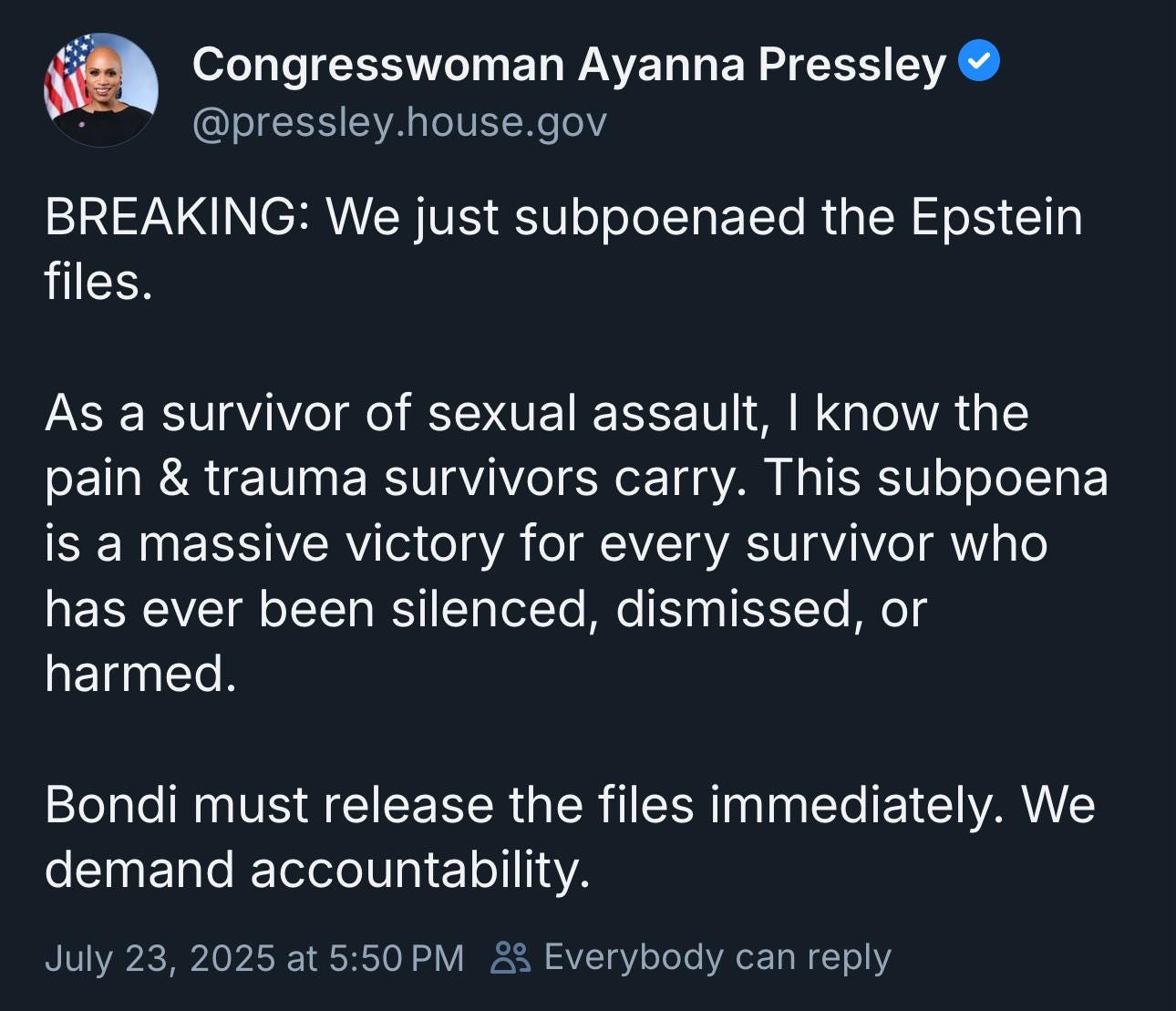 Ayanna Pressley called it a victory for every survivor who was ever silenced, dismissed, or harmed. Amen.