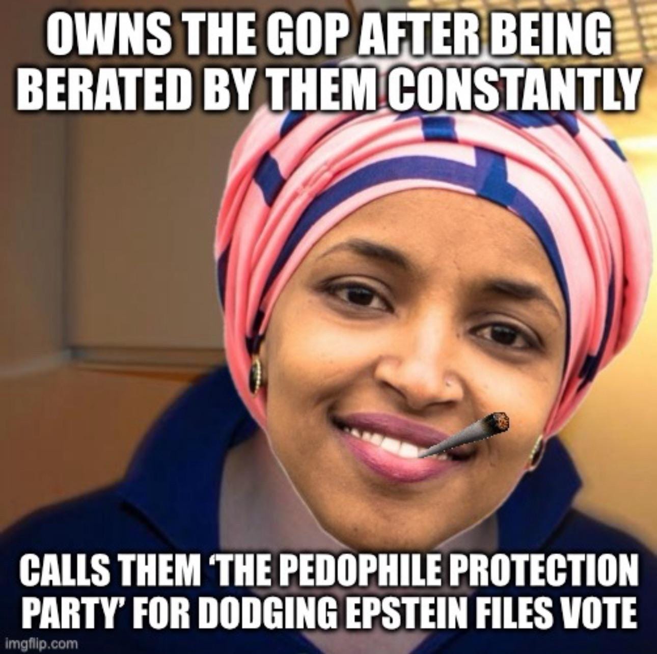 Let it be known: while others cowered, Ilhan Omar spoke plainly. She recently called the GOP what they are, the “Pedophile Protection Party” for dodging the Epstein files vote.