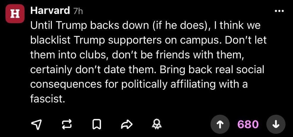 Don’t date fascists is good advice generally. Veritas, indeed. Go Harvard!