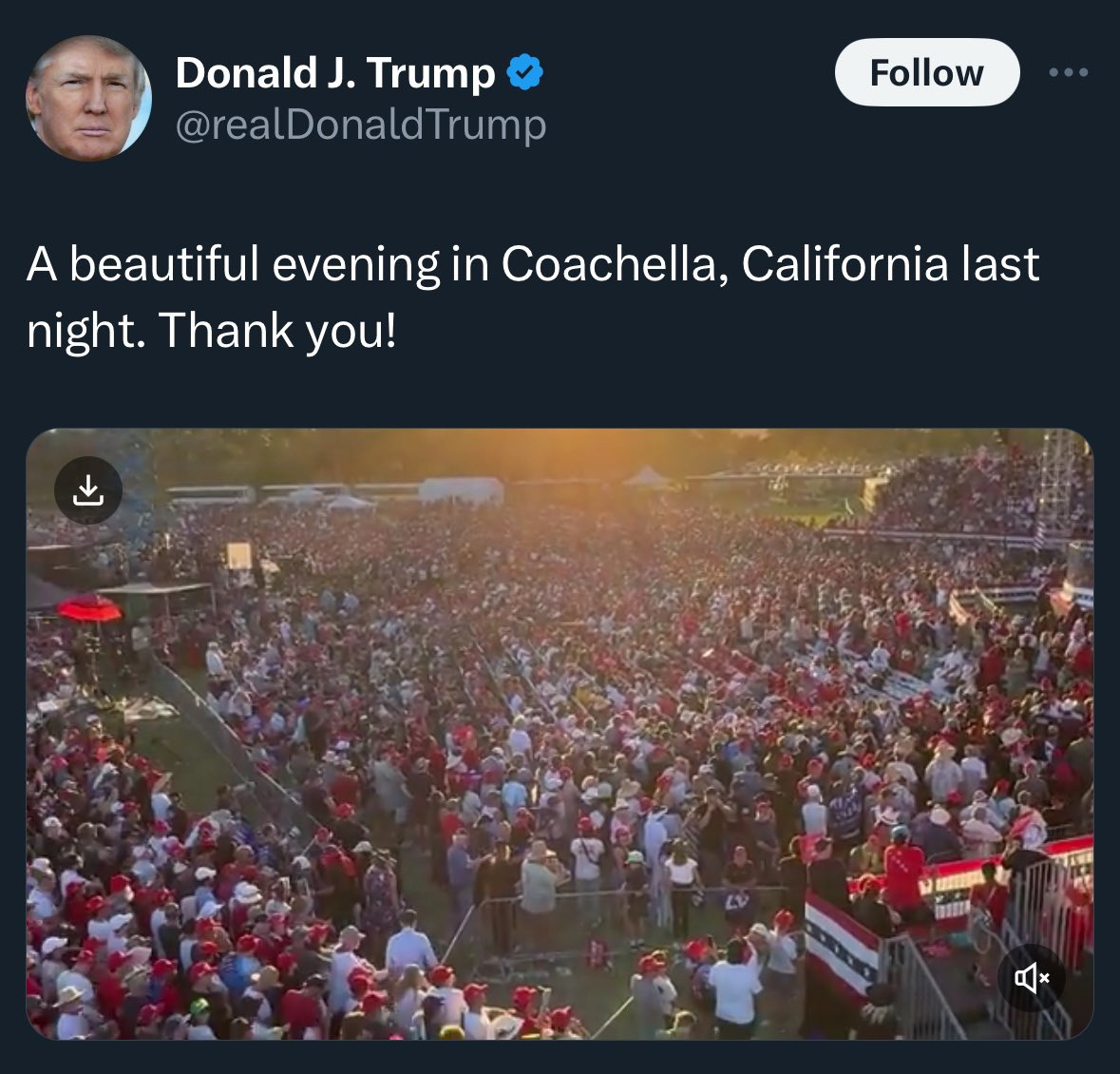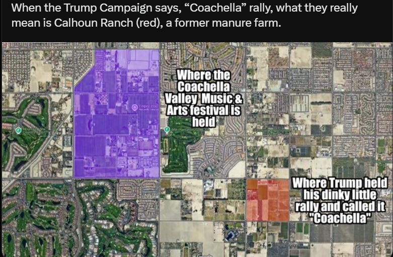 Forsooth! The place holds 15,000 max. He got his photo-op at the manure farm and then got out as fast as possible.