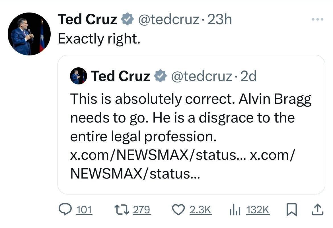 Let us never forget that Ted Cruz, the Zodiac Killer himself, once retweeted and praised his own tweet, calling it “Exactly right.” Ted, buddy, even when you agree with yourself, it’s still wrong.