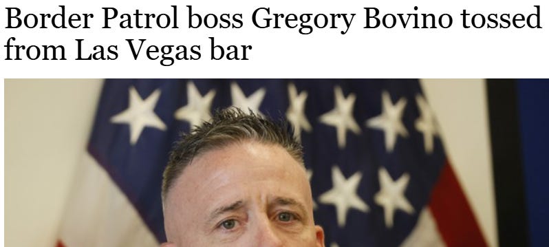 And now for something completely different. Greg Bovino got thrown out of a bar in Las Vegas. Given his diminutive stature, God imagines he got thrown a long ways.