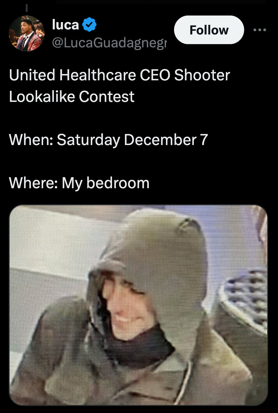 This past week hath revealed America to itself. Millions of you have spoken through your tweets, posts, and memes, and the message is loud and clear: “We hate health insurance companies.” Fair. But some of you are processing this by swooning over a guy who, let’s be honest, looks like he’s auditioning for the role of “Hot Villain #4” in a Netflix drama.