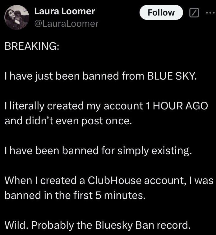 While Elon is out here begging for people to stop hating him, Laura Loomer actually tried to signup for Bluesky. What makes this ridiculous is that she has already been banned on every other platform other than Twitter for her long record of hate-speech.