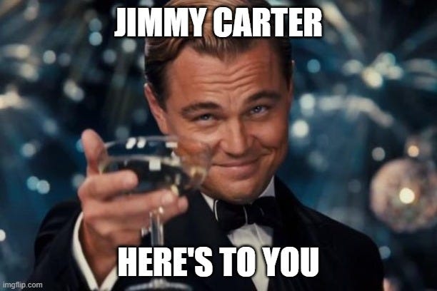 Which brings me to Jimmy Carter. Jimmy didn’t wait for someone to beg for positivity—he lived it. He picked up a hammer, built homes, and left the world a little better than he found it.