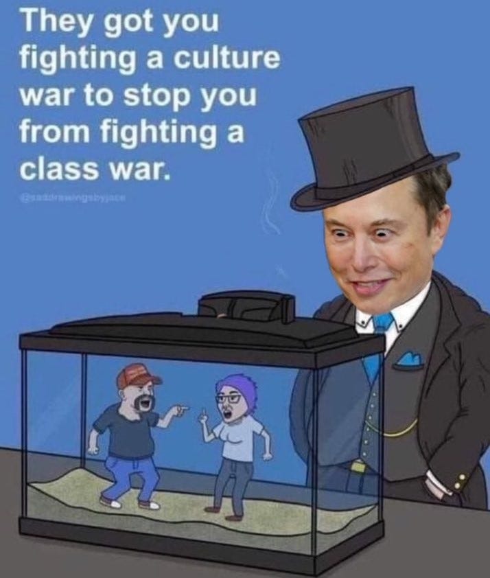 Billionaires are using all of their resources to turn underpaid workers against each other, so that you never focus on them, the billionaires.
