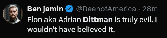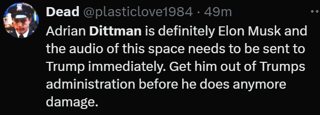 As the drama escalated, a curious character named Adrian Dittmann appeared in an X Space, defending Musk’s decisions. Suspiciously, Dittmann’s voice sounds EXACTLY like Musk’s voice.