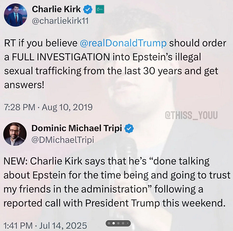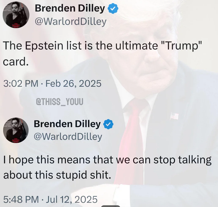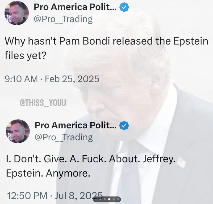 And just like that, all the top MAGA influencer accounts on X, who had spent years screaming about Epstein, suddenly pivoted.