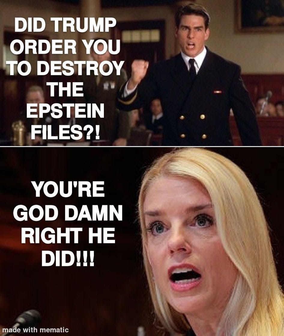 While you were sleeping, the Republicans voted to block a Democratic amendment that would have forced the release of the Epstein files. It’s the most obvious and vile coverup of all time. President Pedo demands everyone stop talking about it…immediately!