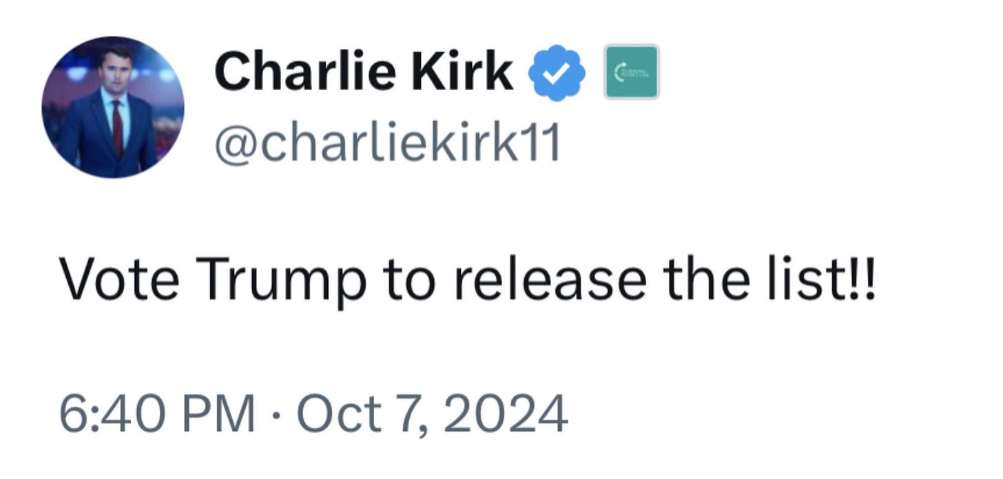 Fugly MAGA influencer Charlie Kirk said that Trump called him this weekend and asked him to stop talking about Epstein.