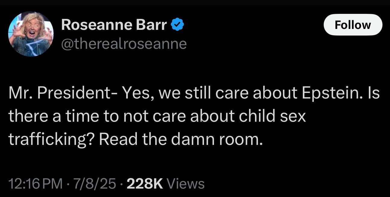 Even rabid MAGA cult member Roseanne Barr condemned him: