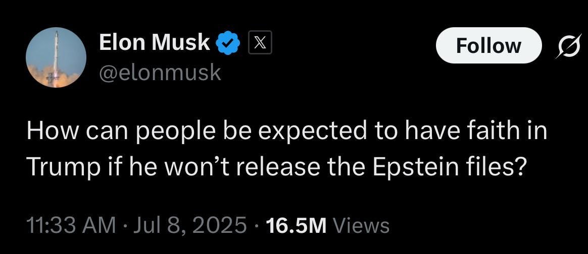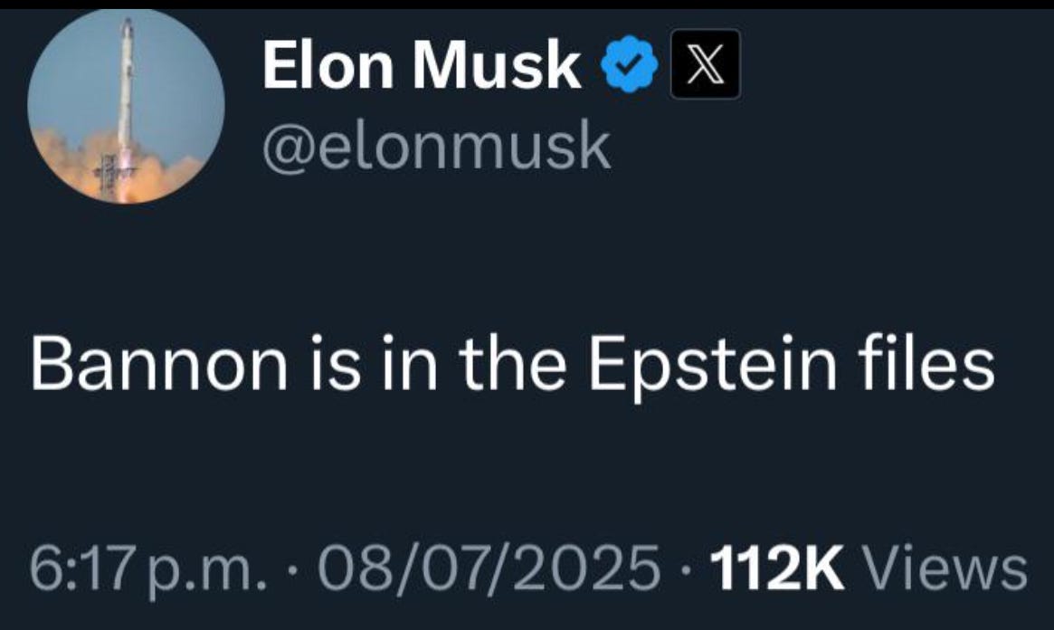 Speaking of Trump’s stooges and henchmen, Elon Musk posted that Steve Bannon is in the Epstein files too.