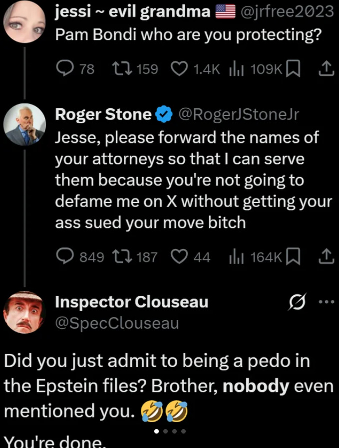 On a random post, a poster asked “Pam Bondi, who are you protecting?”