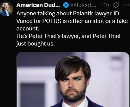 They’re finally scared of the right thing for once. Mass surveillance. Corporate fascism. A police state draped in dark MAGA flags.