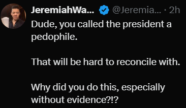 Some were starting to realize that there is no coming back from very publicly calling someone a pedophile. “Why did you do this?!” God is choking with laughter.