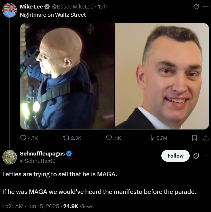 Instead he went on TV and attacked him, and insinuated that this murder of his friends and colleagues by a violent MAGA psychopath was somehow Walz’s fault.