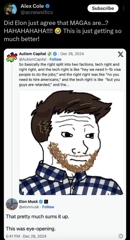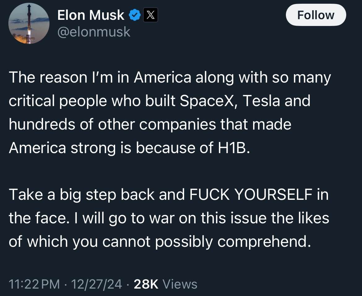 Since yesterday, Elon Musk has continued to respond to MAGA’s outrage over his H1-B visa stance with righteous fury.