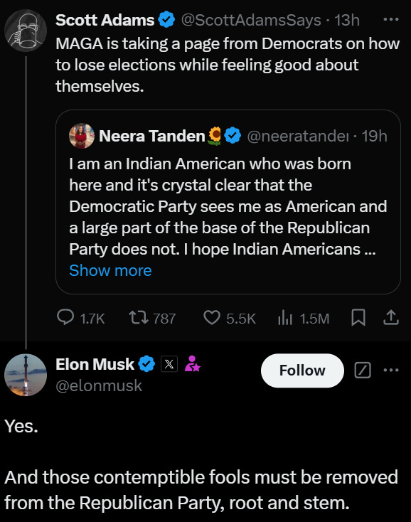 If that wasn’t enough, Musk shared a meme mocking MAGA factions, using a contemptible slur I will not repeat.