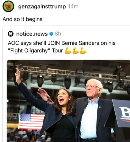 The Bernie-AOC tour is great! However, I am truly alarmed that the dems have caved in and will vote for the CR. Schumer is a terrible leader - his public speaking is embarrassing, he has no fire and is not inspiring. He should rally the dems to vote no and blame the repubs. But, alas the dems have a problem with direct messaging and so are fearful it will backfire because they can't communicate their case for not surrendering what little power they have left.