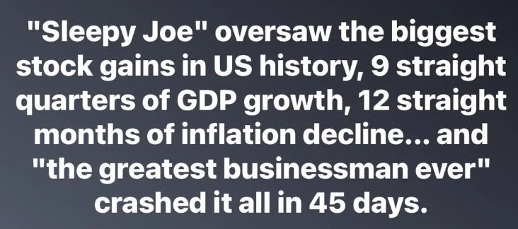 The Trumpcession is here, it is 100% his fault and everyone knows it. His polls numbers are tanking fast.